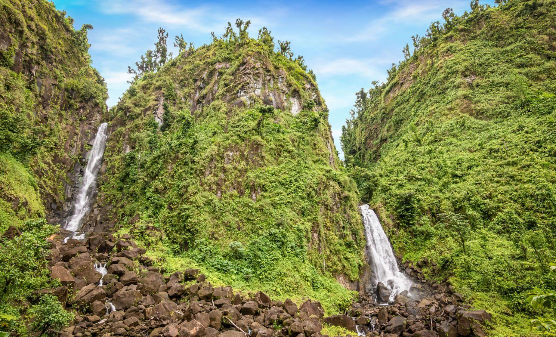 Next, continue your journey to Trafalgar Falls, Dominica's most iconic natural attraction. Known as 'Mother' and 'Father,' these twin waterfalls tumble side-by-side from the mountains into the valley below. A short trail through the rainforest leads you to a scenic viewpoint ideal for capturing photos, and those seeking a closer look can explore the rocks and feel the refreshing mist up close. The power and beauty of these waterfalls perfectly capture the island's raw, untamed charm.