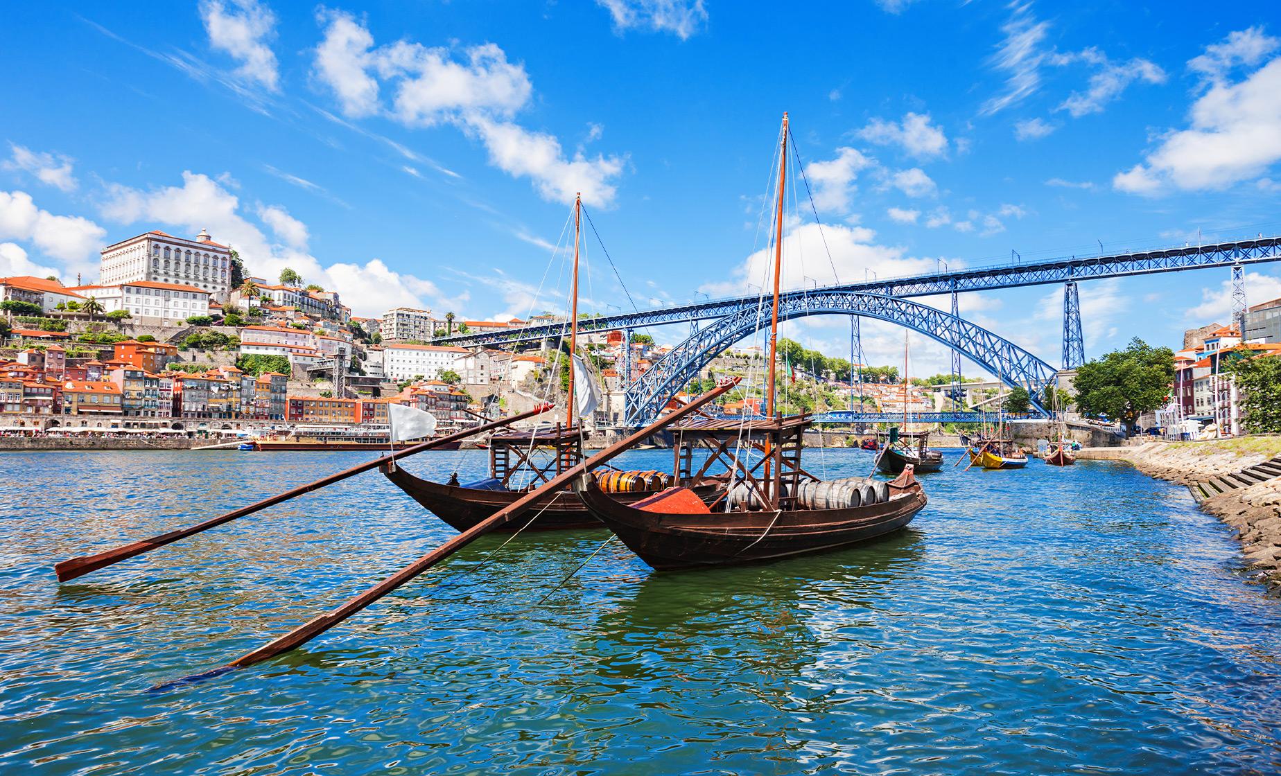 The coastal city of Oporto is the second-largest city in Portugal and is well known for its bridges and wine production.